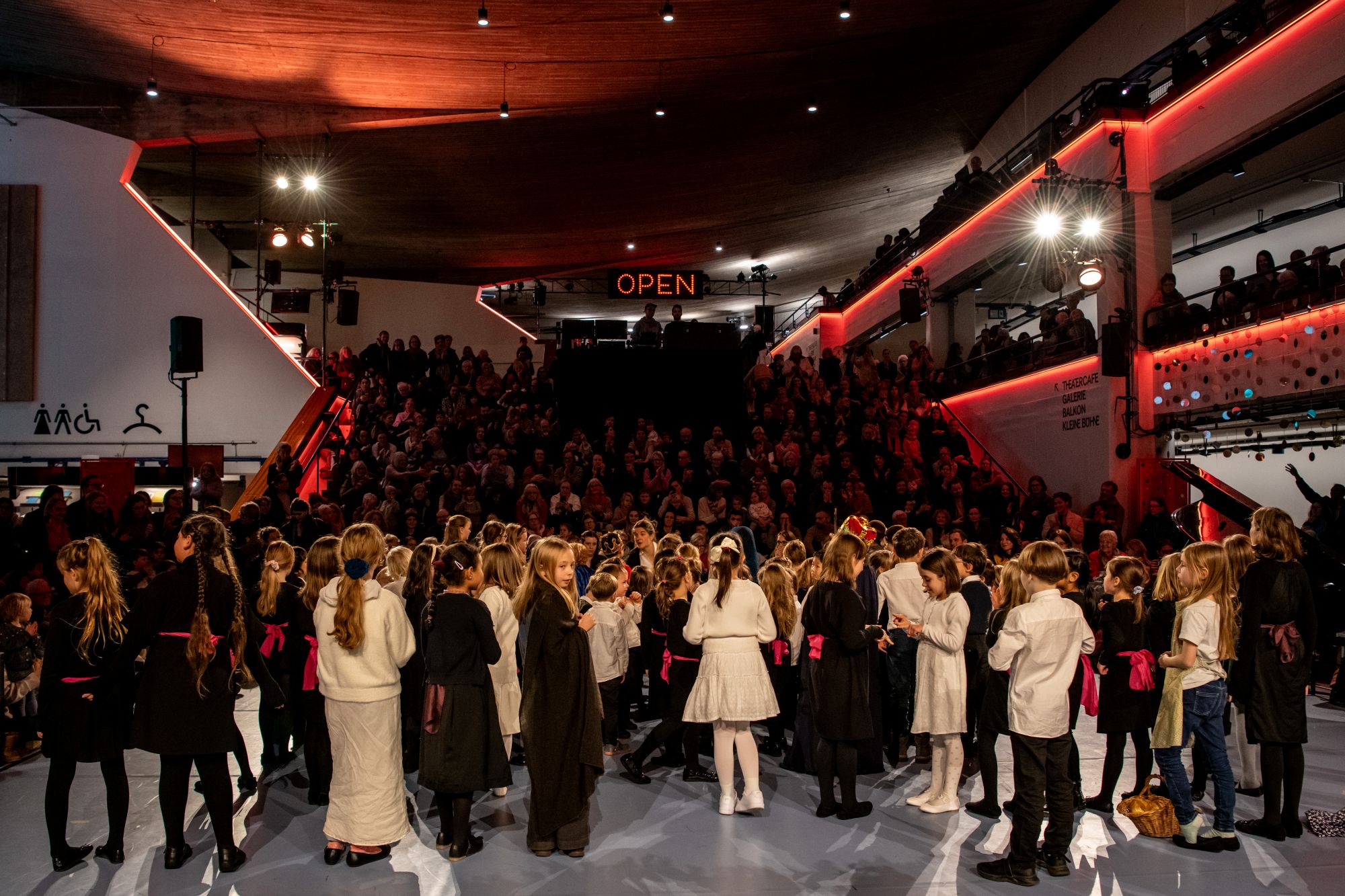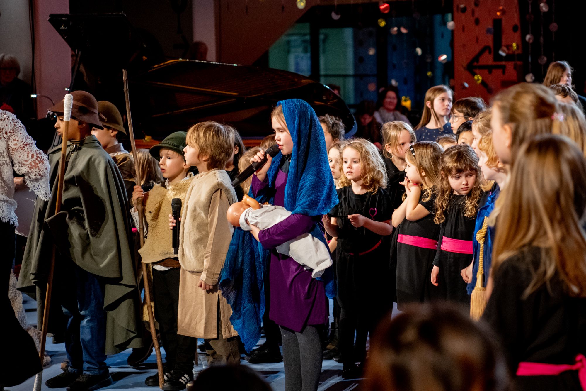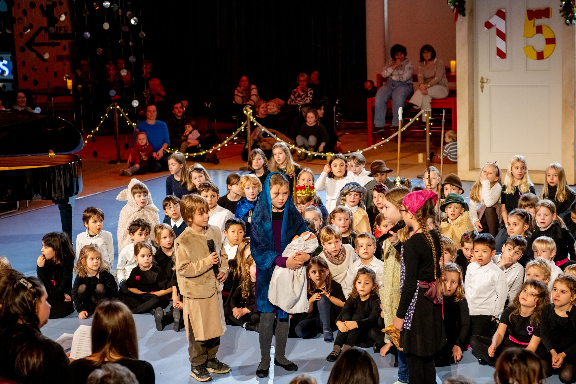 Auch dieses Jahr durften wir beim Adventskalender des Theater Basel im Foyer Public mitwirken und das 15. Adventstürchen öffnen. Dahinter verbargen sich rund 80 Sängerinnen und Sänger der Kurse der Knaben- und Mädchenkantorei Basel. Zum zweiten Mal sangen unsere jüngsten Mitglieder Lieder aus der “Zäller Wiehnacht” als halbszenisches Krippenspiel und versetzten das zahlreich erschienene Publikum in festliche Adventsstimmung.